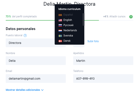 Hay dos opciones para cambiar el idioma de tu currículum.